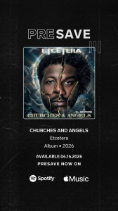 “Churches and Angels” stands as proof that authentic hip-hop storytelling is timeless. ETCETERA continues his tradition of elevating legends—reimagining classics like Renegade alongside Sonya Blade, delivering “Higher” with icon Kwame, and shaking the culture with “City of Churches” featuring UG of Cella Dwellas. Each release cements his ability to merge legacy with new energy—creating nothing short of undeniable hits.